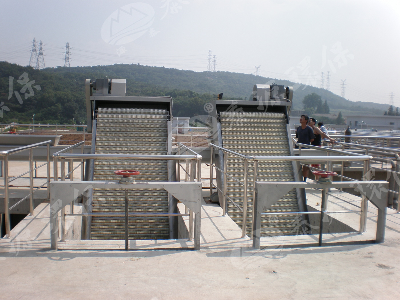 由于耙齿结构设计合理,使耙齿携带杂物到达上端反向运动时,前后相连的两排耙齿之间产生相对自清理运动,促使杂物依靠重力脱落;同时设备后部设置一对与耙齿链运动方向相反的胶板刷,以保证每排耙齿运动到该位置时都能得到彻底的刷净。