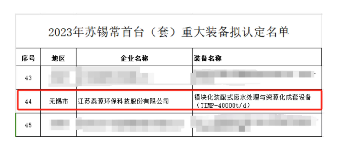 近日,2023年苏锡常首台(套)重大装备拟认定名单公示,ok138太阳集团(以下简称ok138太阳集团)“模块化装配式废水处理与资源化成套设备(TIMP-40000t/d)”成功入选,实现重大技术突破,为推动环保产业标准化、高端化、智能化、绿色化发展发挥重要作用,是本年度宜兴市唯一入选企业!