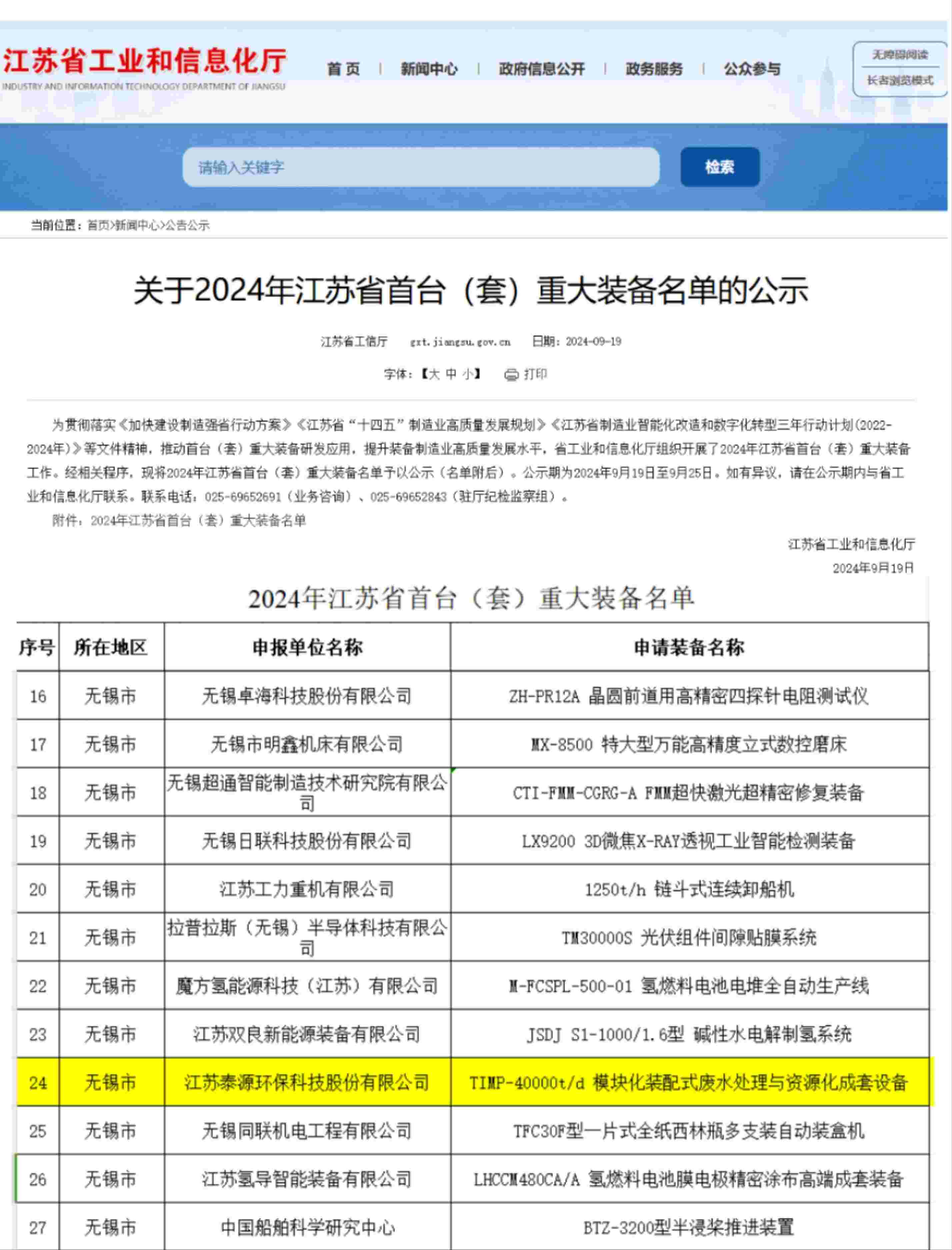宜兴唯一 | 江苏省首台(套)重大装备名单公布 ok138太阳集团独领风骚