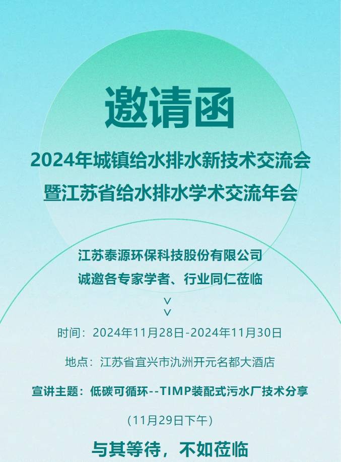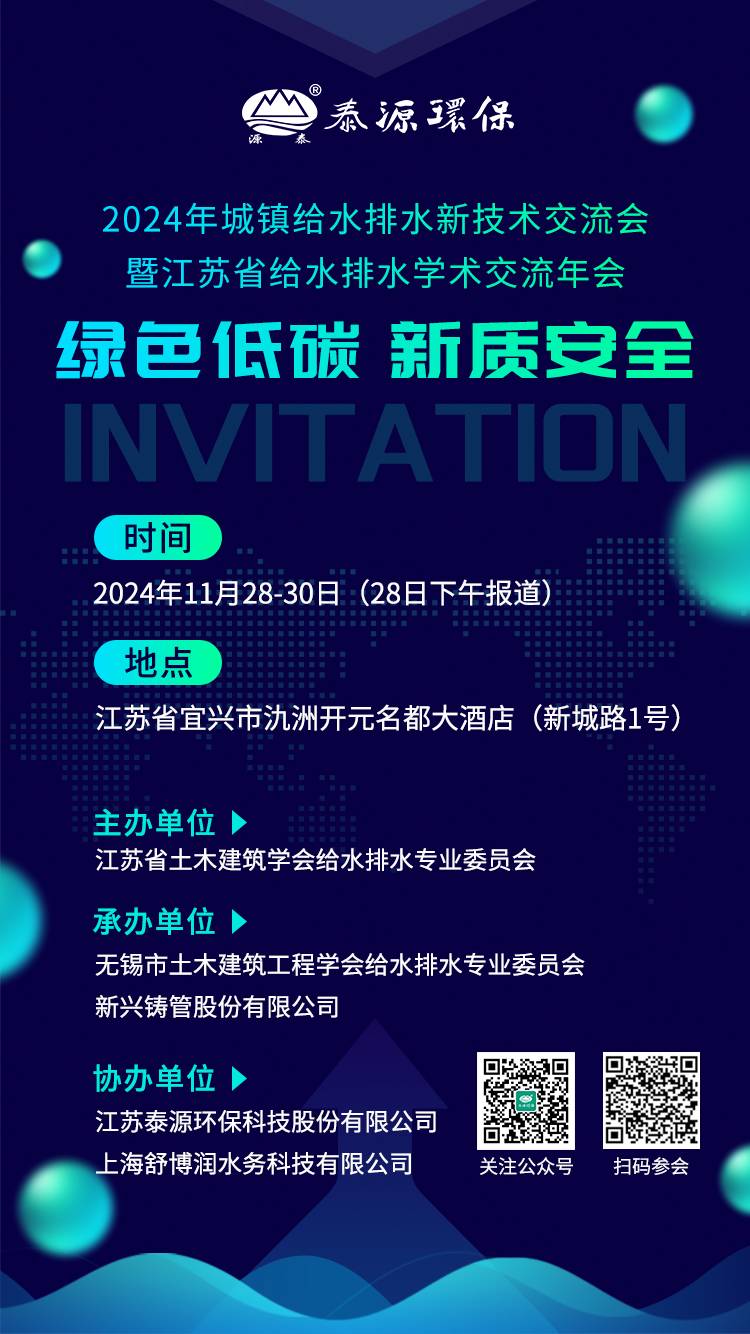 【您有一封邀请函】2024年城镇给水排水新技术交流会暨江苏省给水排水学术交流年会,ok138太阳集团邀您共赴!