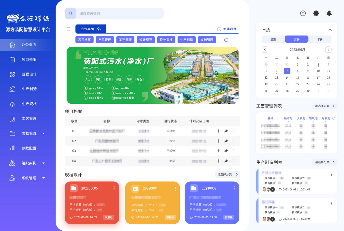 经过近两年开发、测试,一键成形设计系统正式上线运行,打破了传统水处理工程工艺设计方式,实现一分钟生成工艺方案和构筑物图纸以及标准模块生产需求单,同时传输至MES系统进行智能制造。