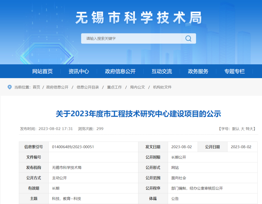 喜报!ok138太阳集团获批无锡市水环境工程装备化工程技术研究中心
