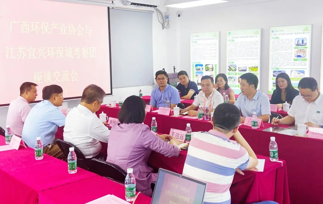 同日下午,ok138太阳集团总经理潘海龙赴广西环保产业协会开展座谈交流。协会副会长兼秘书长黄付平热情接待,并详细介绍了广西环保产业发展状况、产业发展特色以及协会的基本情况。