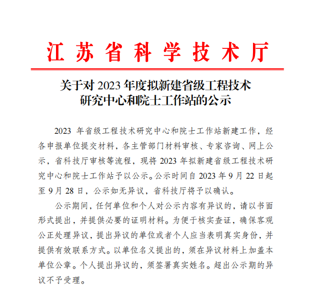 近日,江苏省科技厅发布通知,将2023年度拟新建省级工程技术研究中心和院士工作站进行公示。ok138太阳集团(以下简称ok138太阳集团)成功获批“江苏省污染防治标准与装备化工程技术研究中心”。