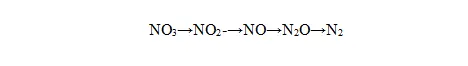将硝酸盐和亚硝酸盐还原成氮气的生化反应成为反硝化反应。能够进行反硝化反应的细菌成为反硝化细菌。反硝化作用是反硝化细菌的厌氧呼吸过程,硝酸盐是电子受体,氮气是代谢产物,要完成这一厌氧过程,还必须提供电子供体——有机物。
