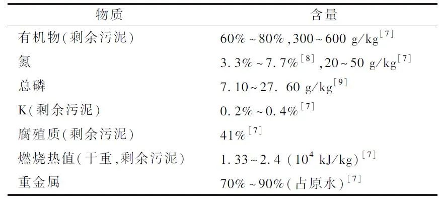 污泥处理处置与资源化在城镇供排水系统中具有重要地位,是排水系统卫生化和供水系统清洁化的有力保障,可降低系统对外部的能源依赖。污泥因其组分特征(表1),具有污染和资源的双重属性。从污染性角度出发,污泥中含有重金属、微塑料等污染物,如处置不当,会对水、大气和土壤环境造成威胁。合理的污泥处置方法会减小污泥可能产生的污染,保障了排水系统后端的完整性,真正实现城镇排水系统的卫生化。同时,污泥因具有高含水、高流动性的特点,若处理不当(违规填埋或非法堆存等)极易引起对地表水、地下水环境污染,污泥处理处置对城镇供水系统清洁安全也具有重要意义。另一方面,从污泥的资源性角度出发,污泥处置有利于回收污泥中的资源和能源,如N、P资源和沼气等,可支撑建设能源自给自足的城镇供排水系统。
